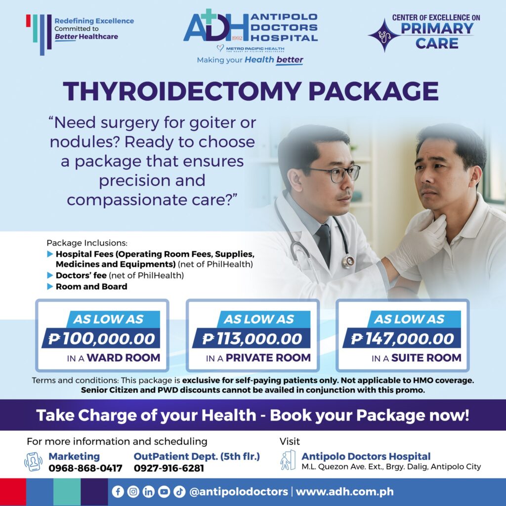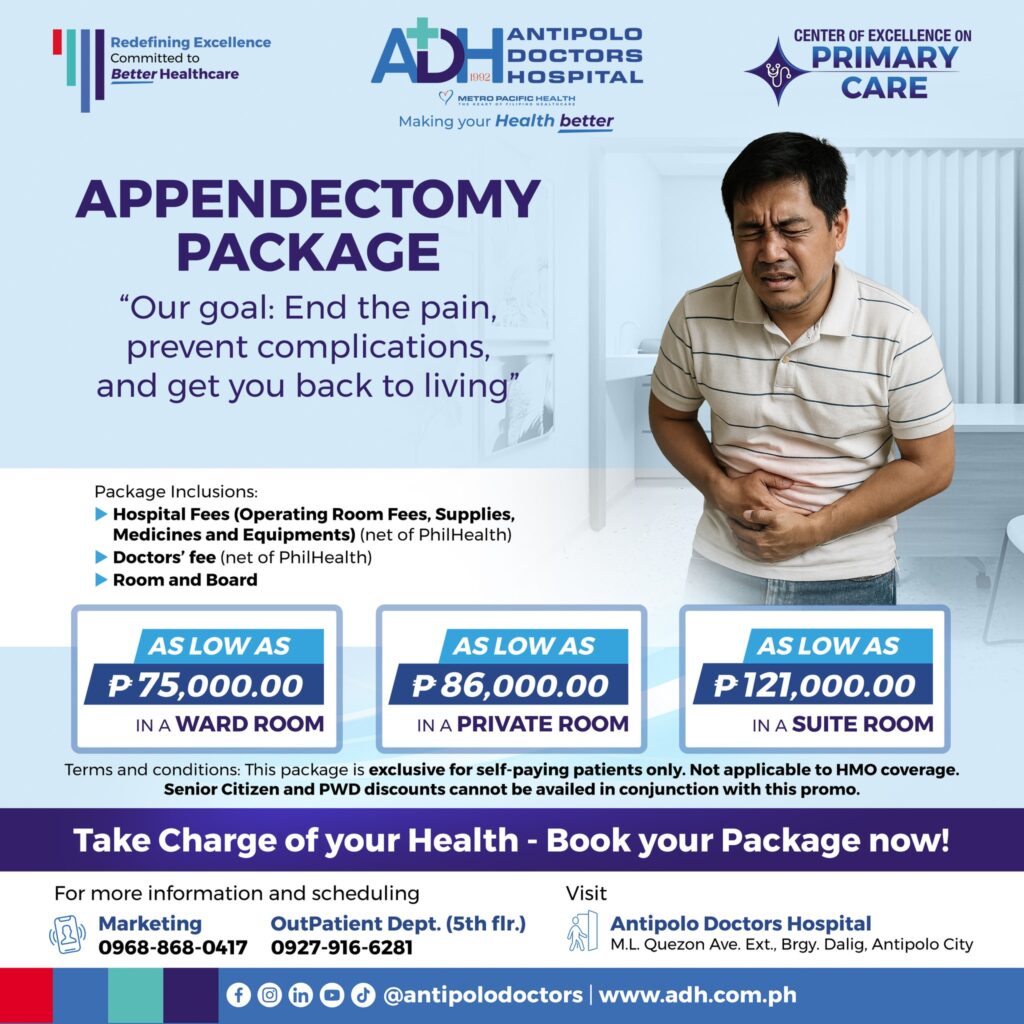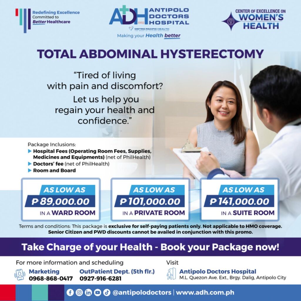 Package Inclusions: Hospital Fees (Operating Room Fees, Supplies, Medicines and Equipments) (net of PhilHealth) Doctors’ fee (net of PhilHealth) Room and BoardSome text.